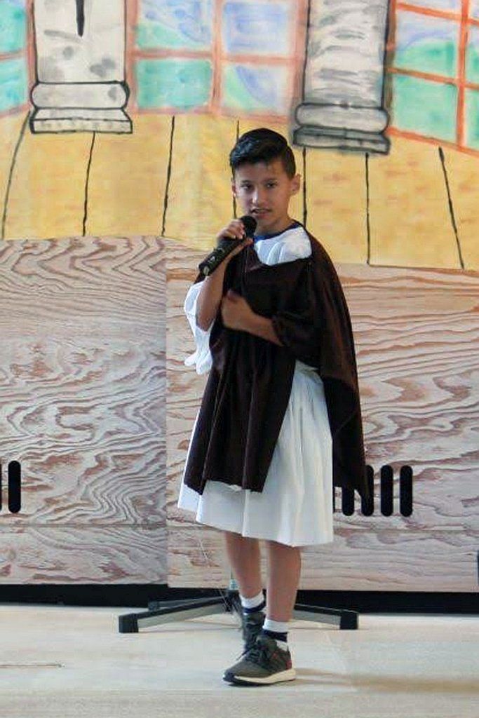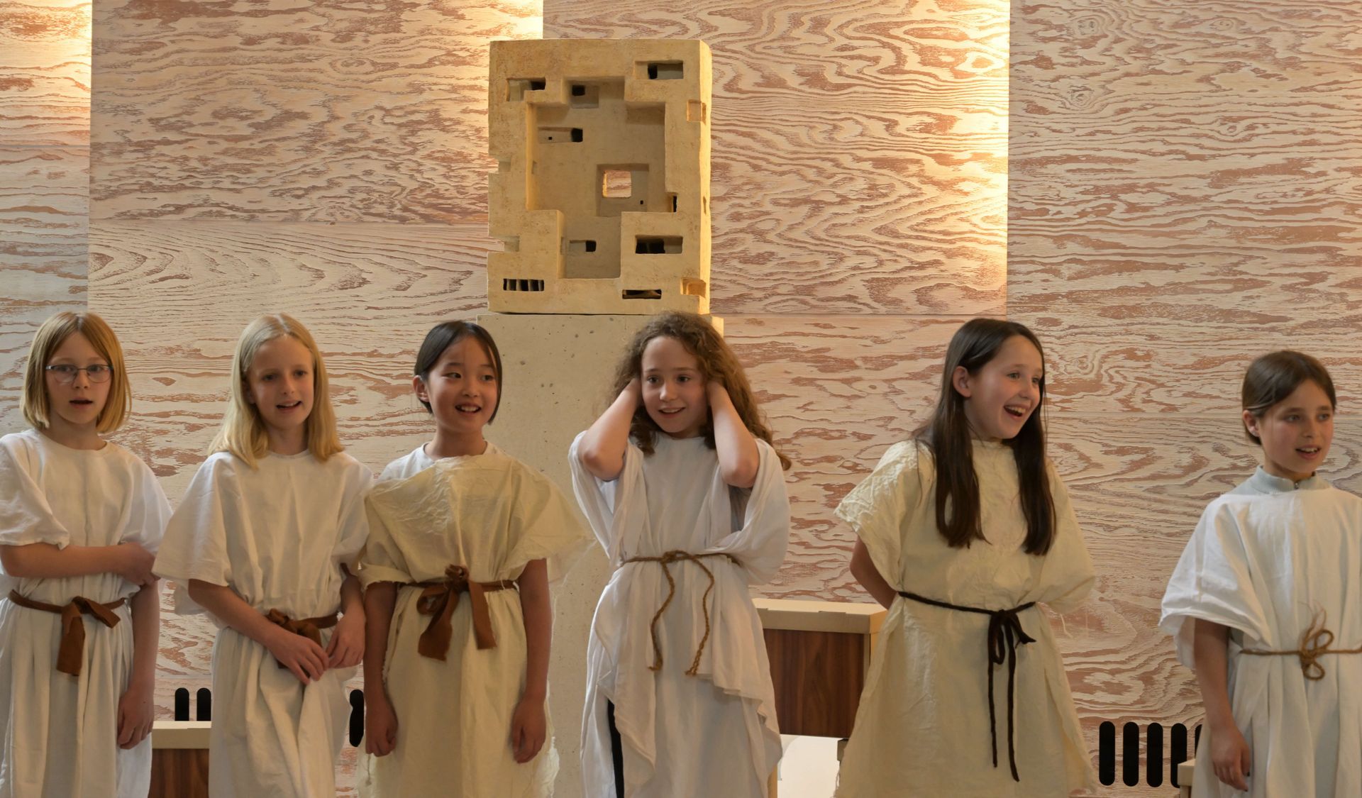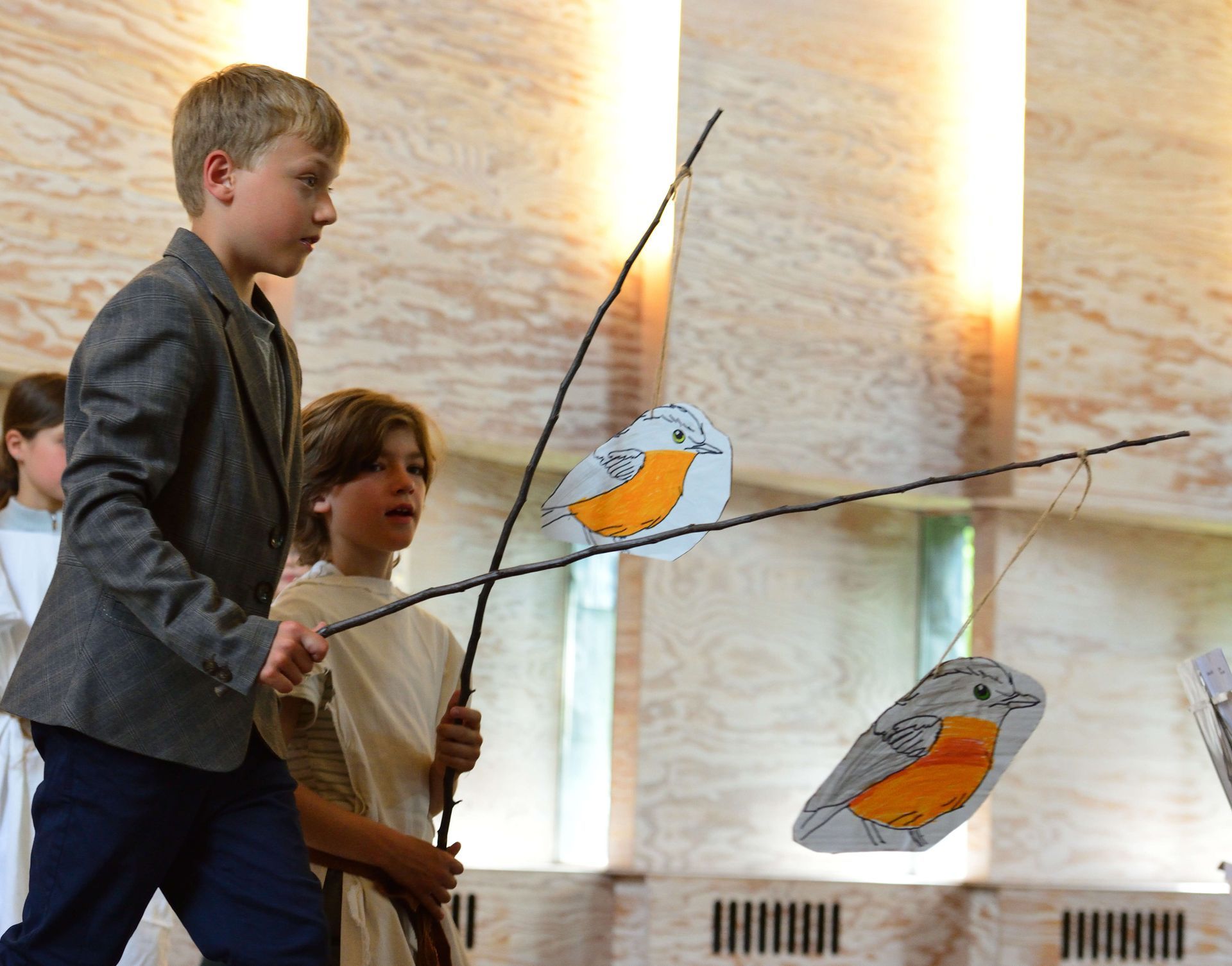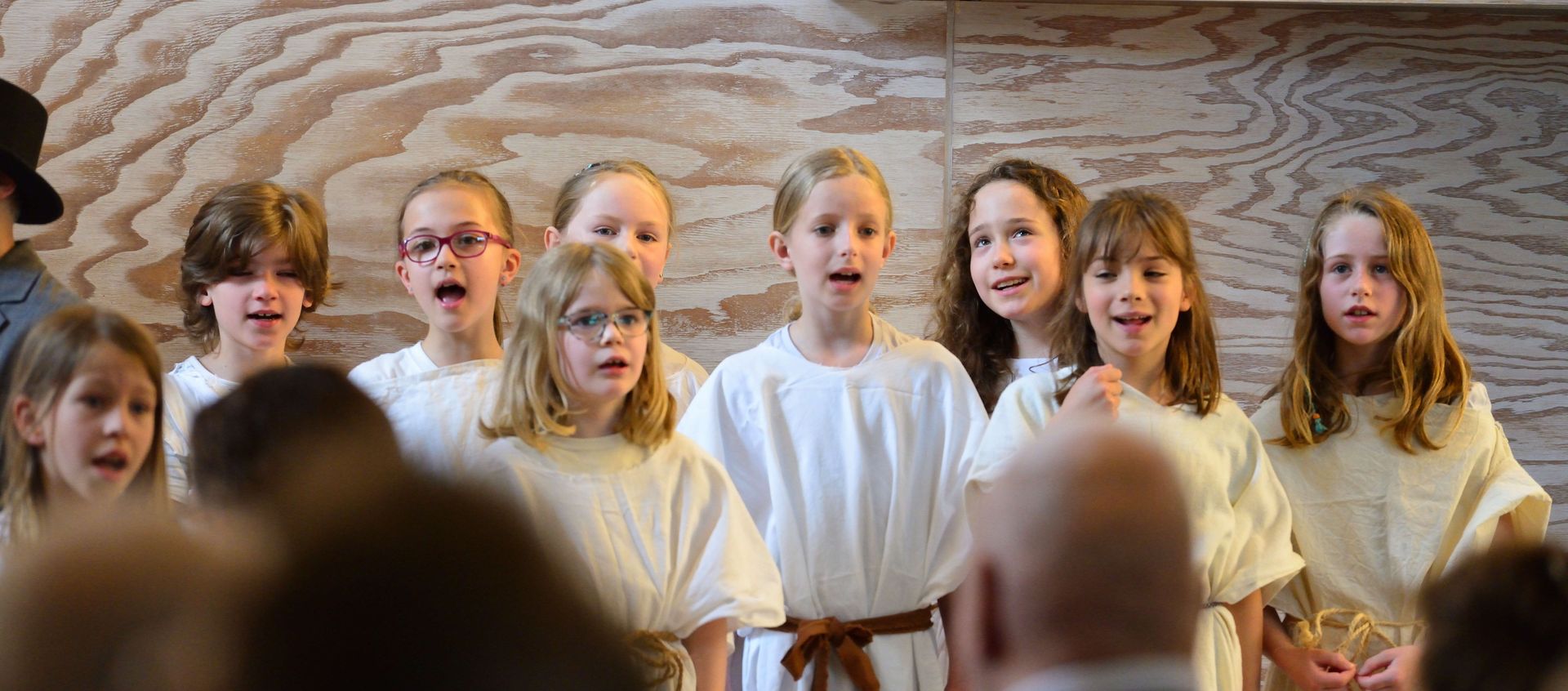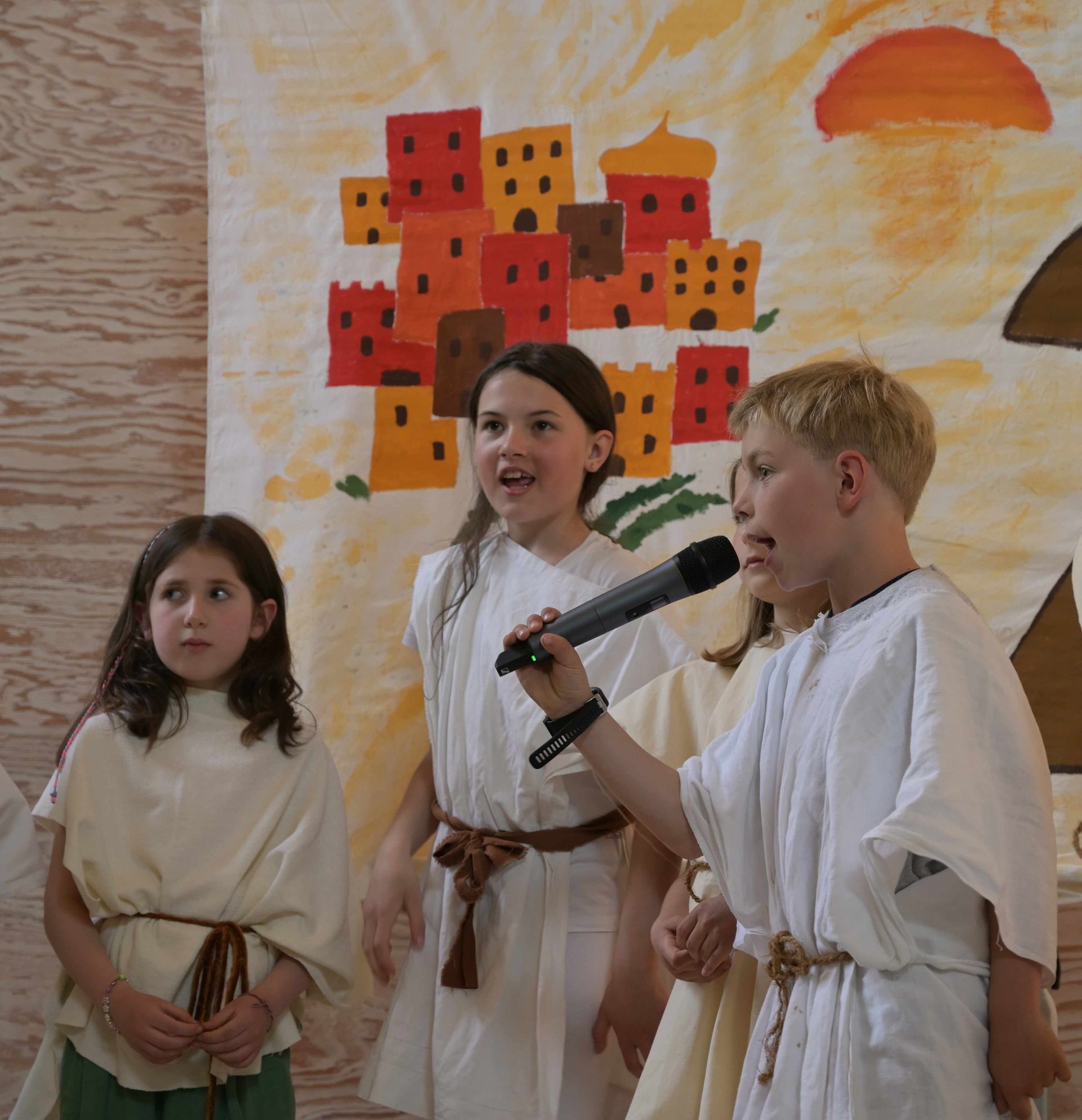 Die aktuell 30 Kinder unter der Leitung von Kantor Thomas Wegst sangen und spielten die Erzählung. Bühnenbilder und Kostüme wurden wieder von den Eltern mitgestaltet.