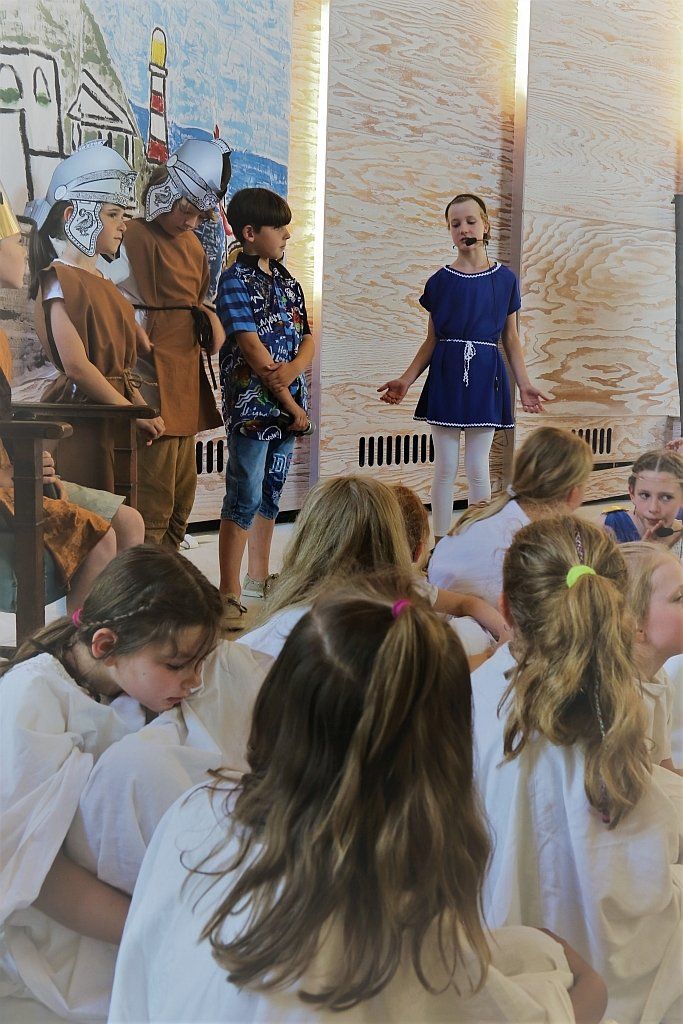 Am Samstag, den 18. Juni 2022 war nach dreijähriger Coronapause endlich mal wieder ein Kindermusical in der Pauluskirche in Zündorf zu bestaunen. Dementsprechend enthusiastisch gingen auch die knapp 30 Kinder des "Zündorfer Kinderchores" in den beiden Aufführungen zu Werke. Das Musical "Giant Finn" wurde von Margaret Rolf geschrieben. Vorlage hierfür war ein irisches Märchen.